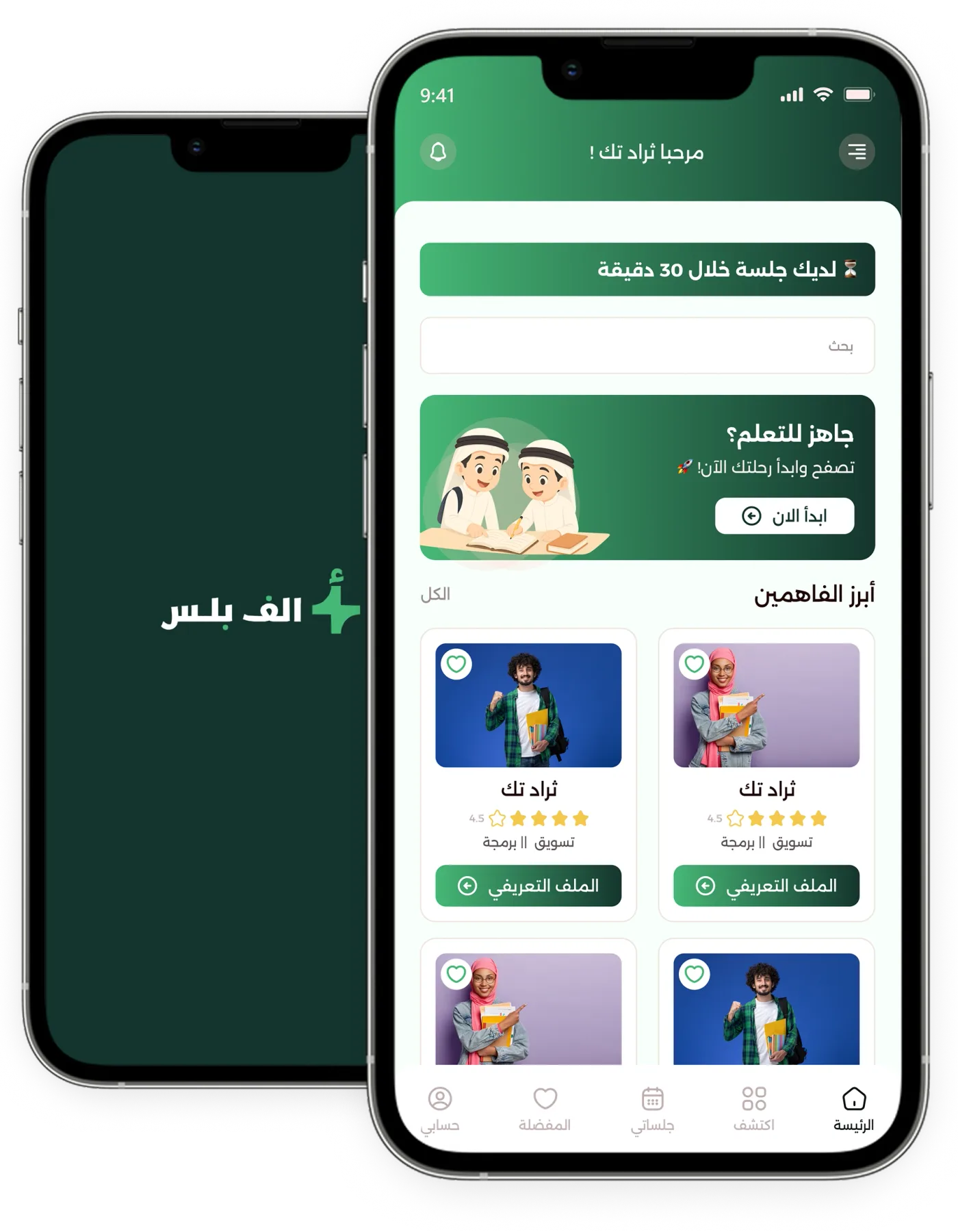 ألف بلس يقدّم تجربة تعليمية متكاملة: احجز جلسات مباشرة أو شاهد المسجلة، اختر الطالب المناسب، ادفع بسهولة وأمان، وتابع تقييمك وأدائك بشكل مستمر.